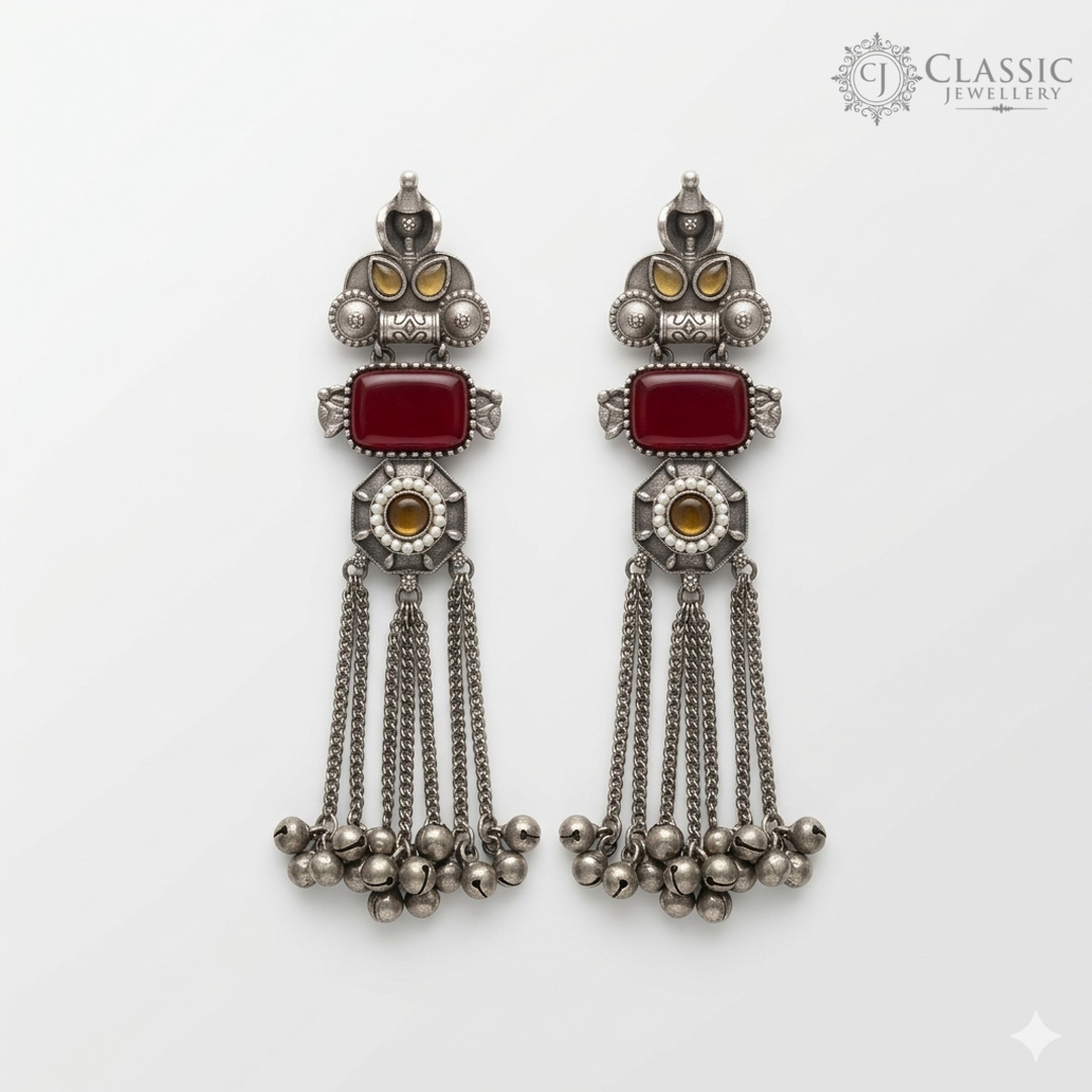 Timeless Ethnic Charm Make a bold statement with these exquisite German Silver Tassel Earrings.