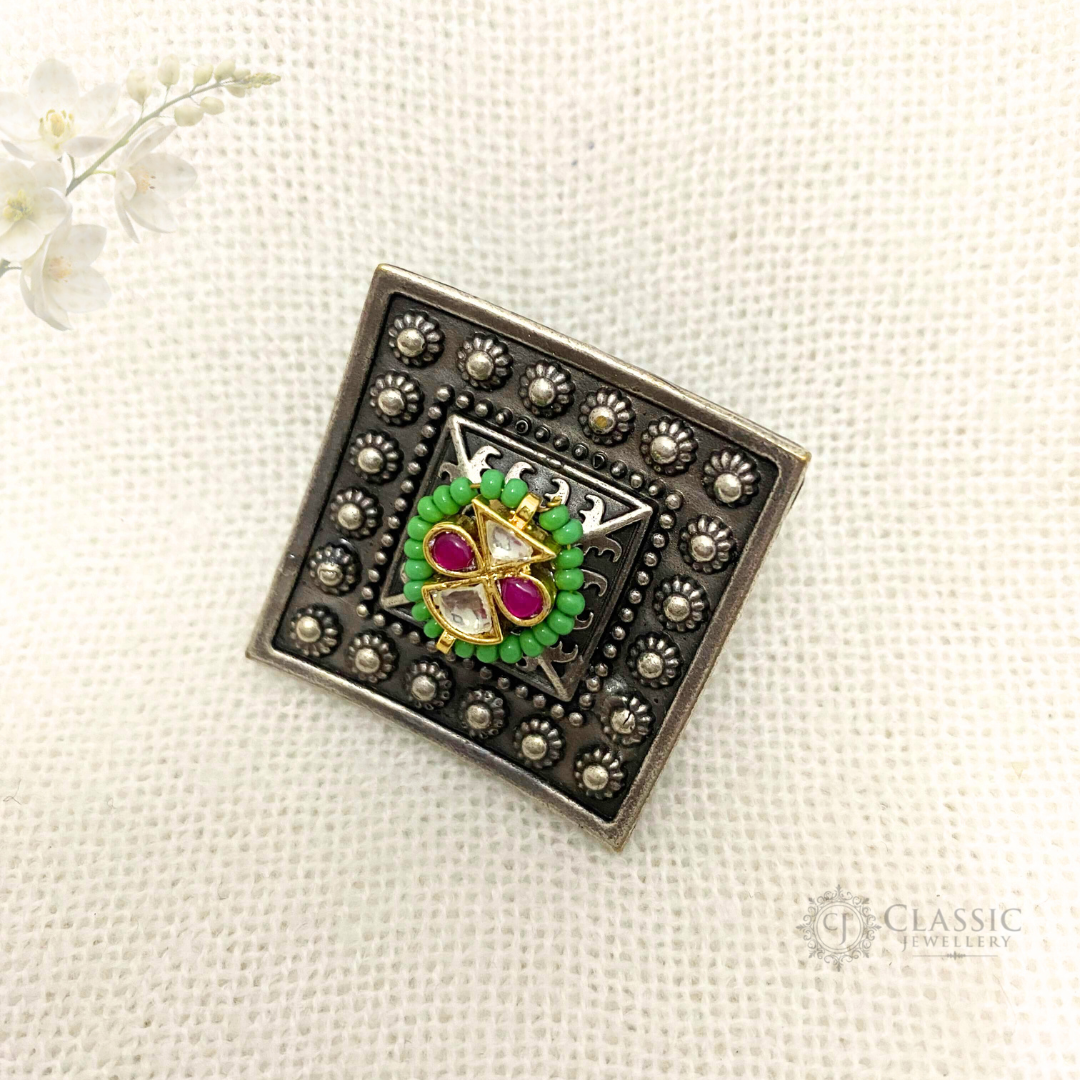 German Silver Dual Tone Kundan Ring