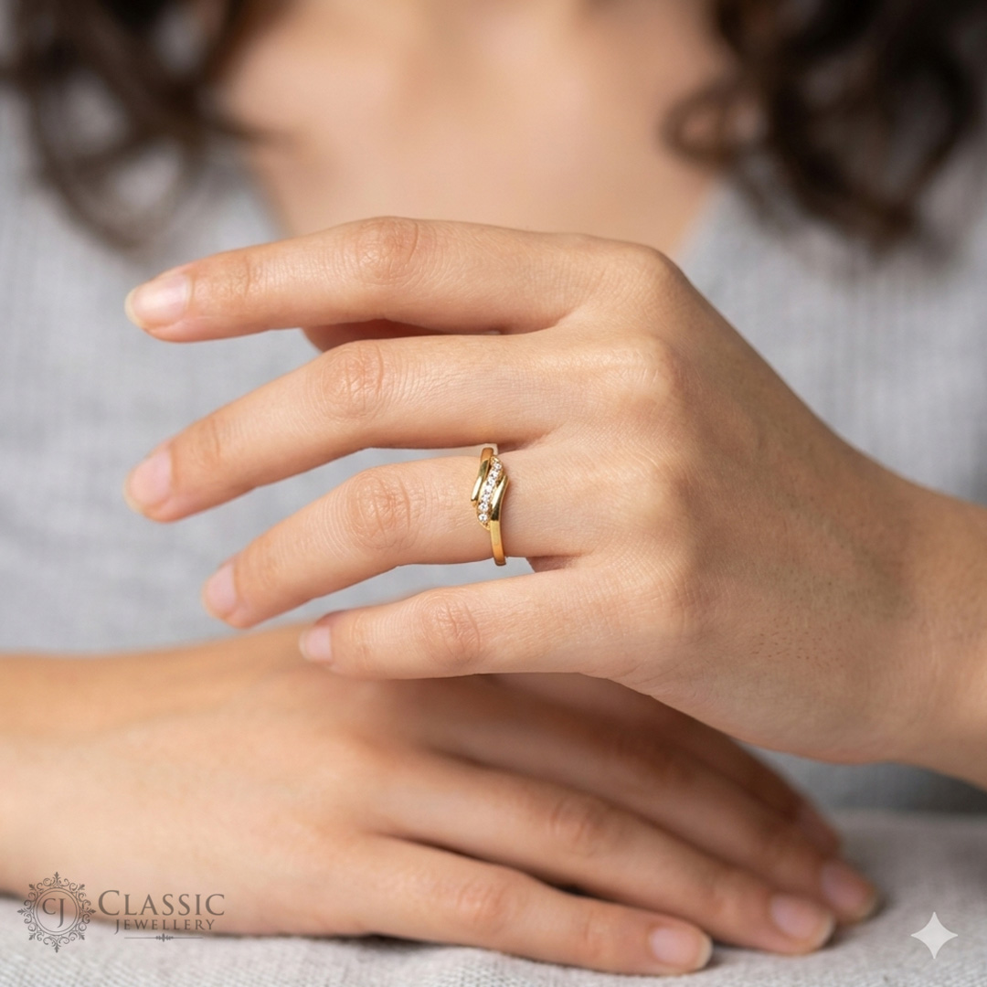 Golden Wave Anti-Tarnish Crystal Ring