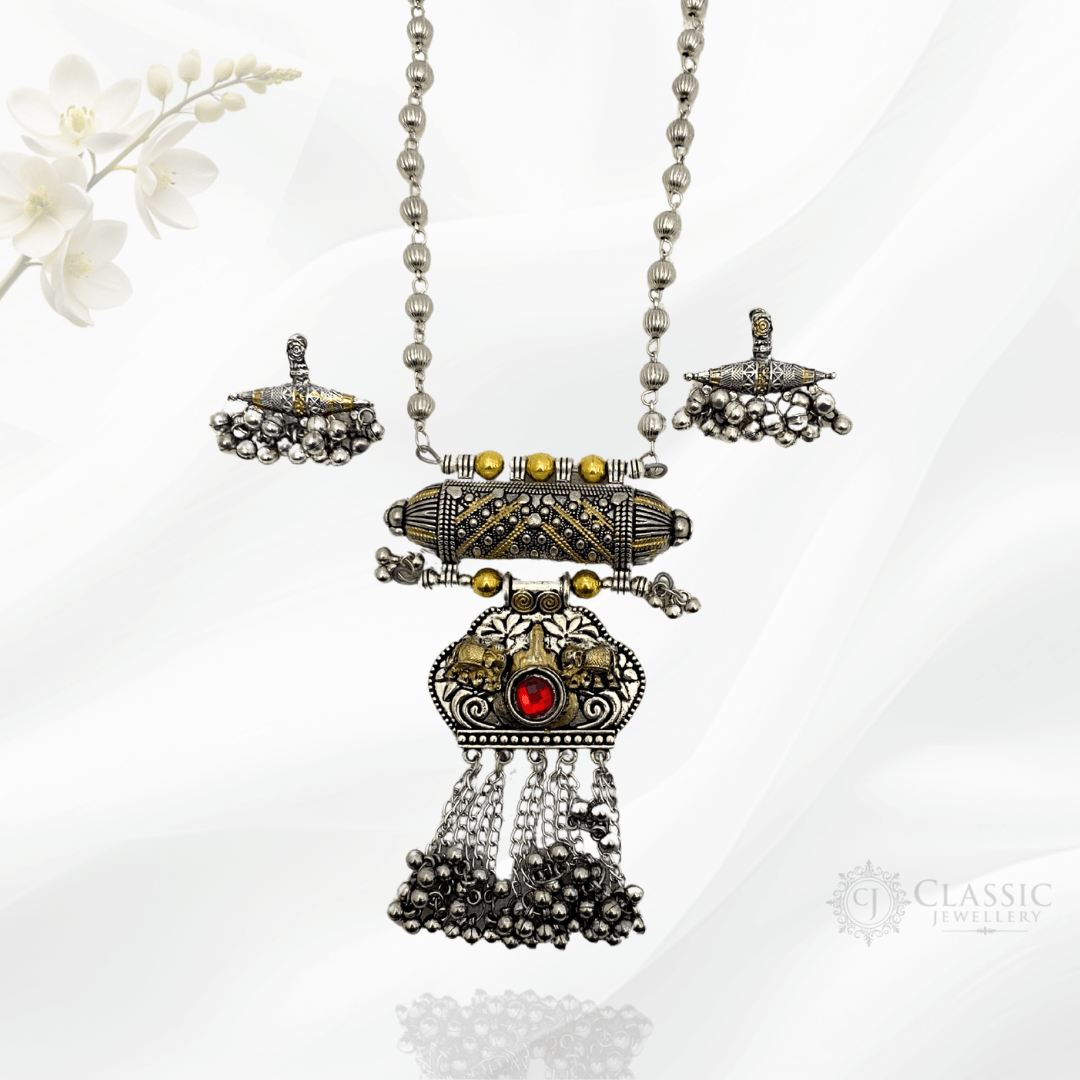Silver Oxidized Dual Tone Necklace