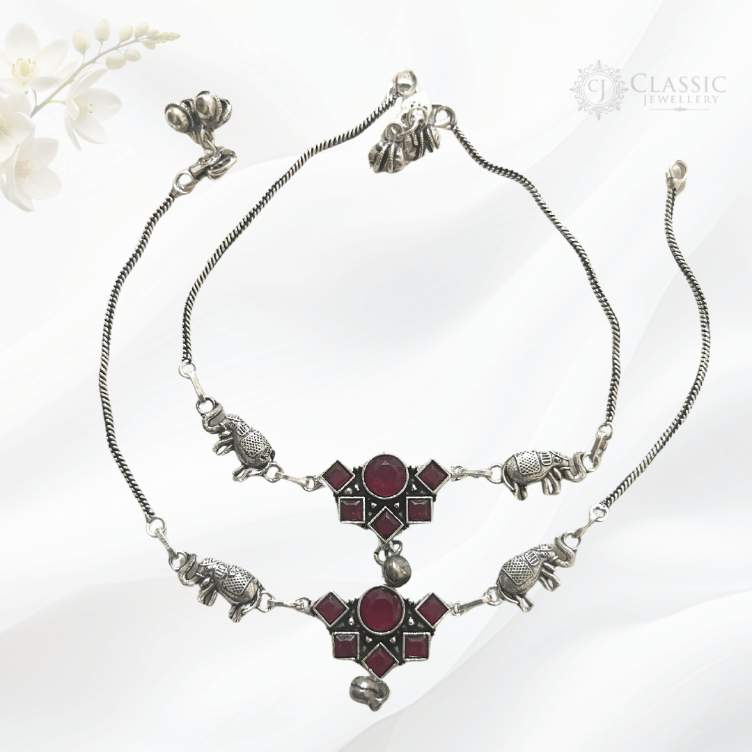 Silver Toned Oxidized Anklets