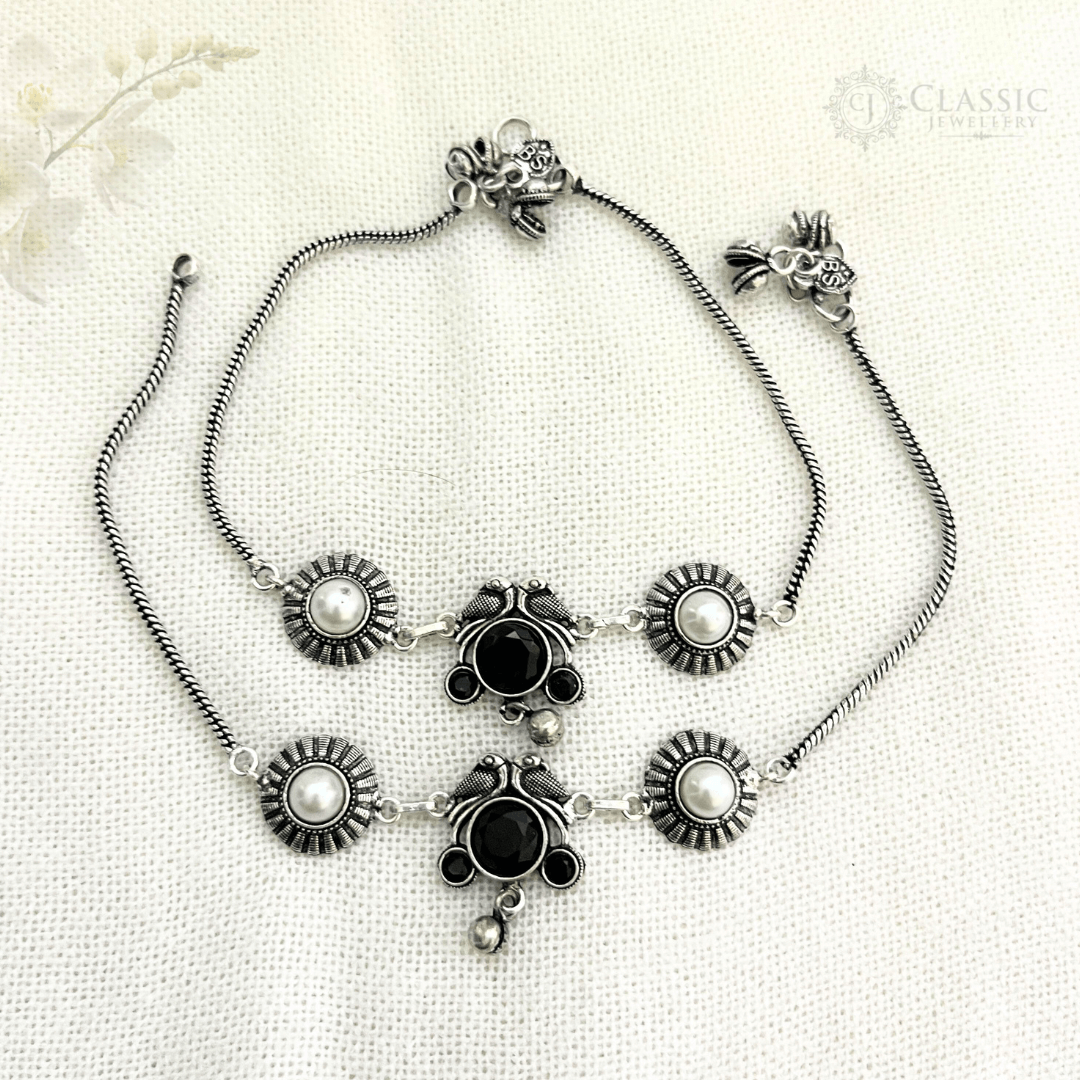 Silver Toned Oxidized Anklets