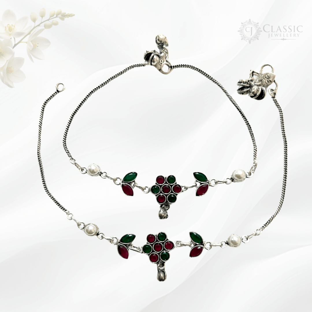Silver Toned Oxidized Anklets