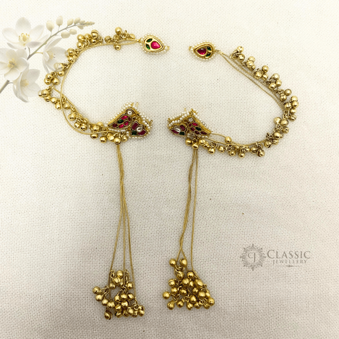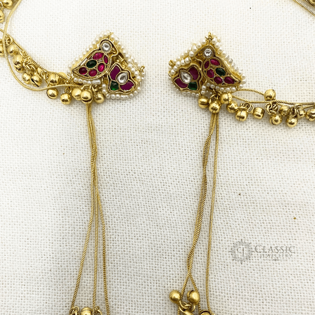 | Material | Golden Plated Kashmiri Earrings with chain |